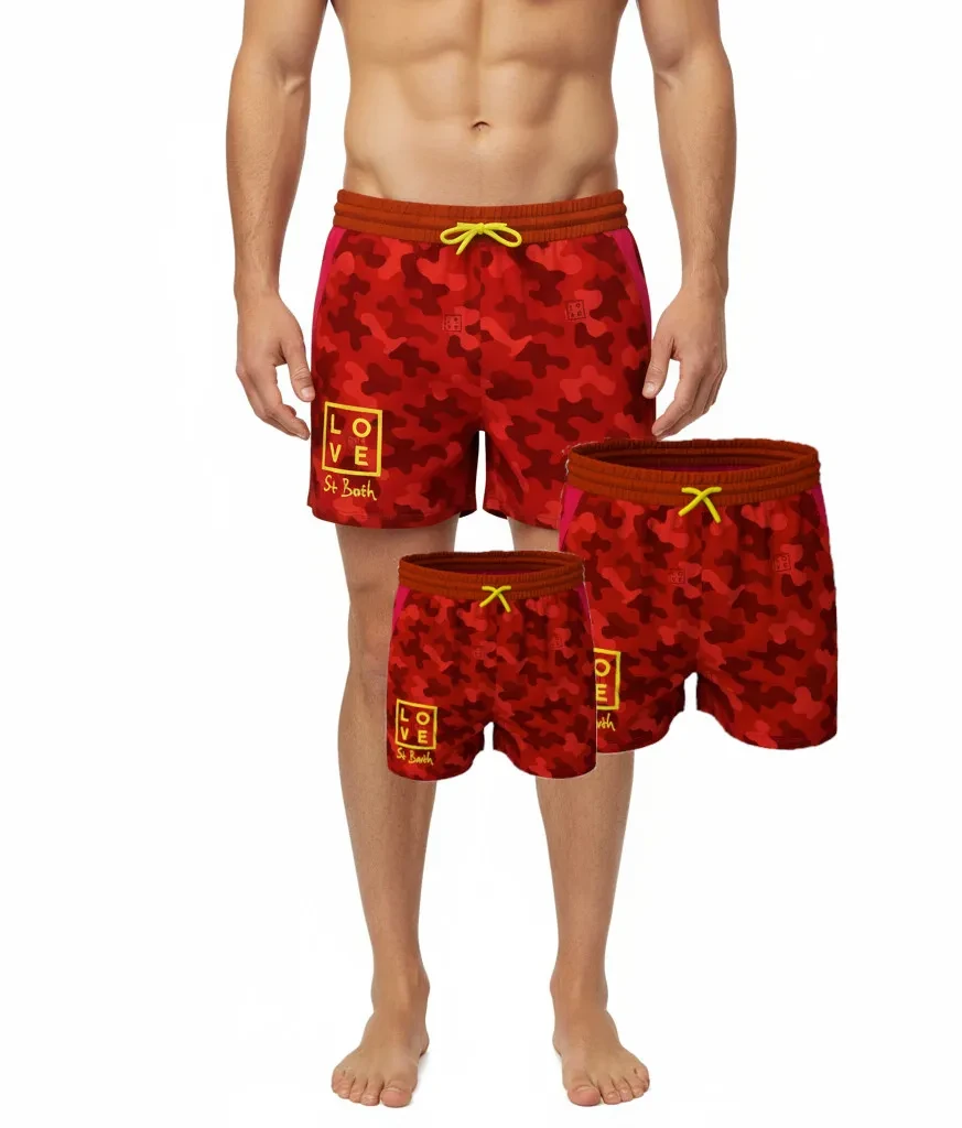 LOVE “Bahamas” Swim Shorts – Matching Duo for Father & Son | Lightweight Mesh with St Barth Print