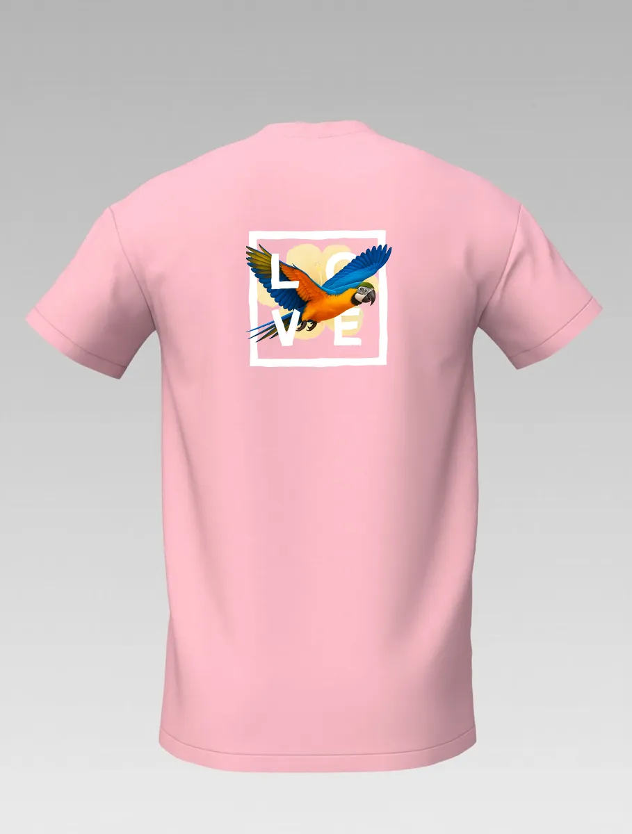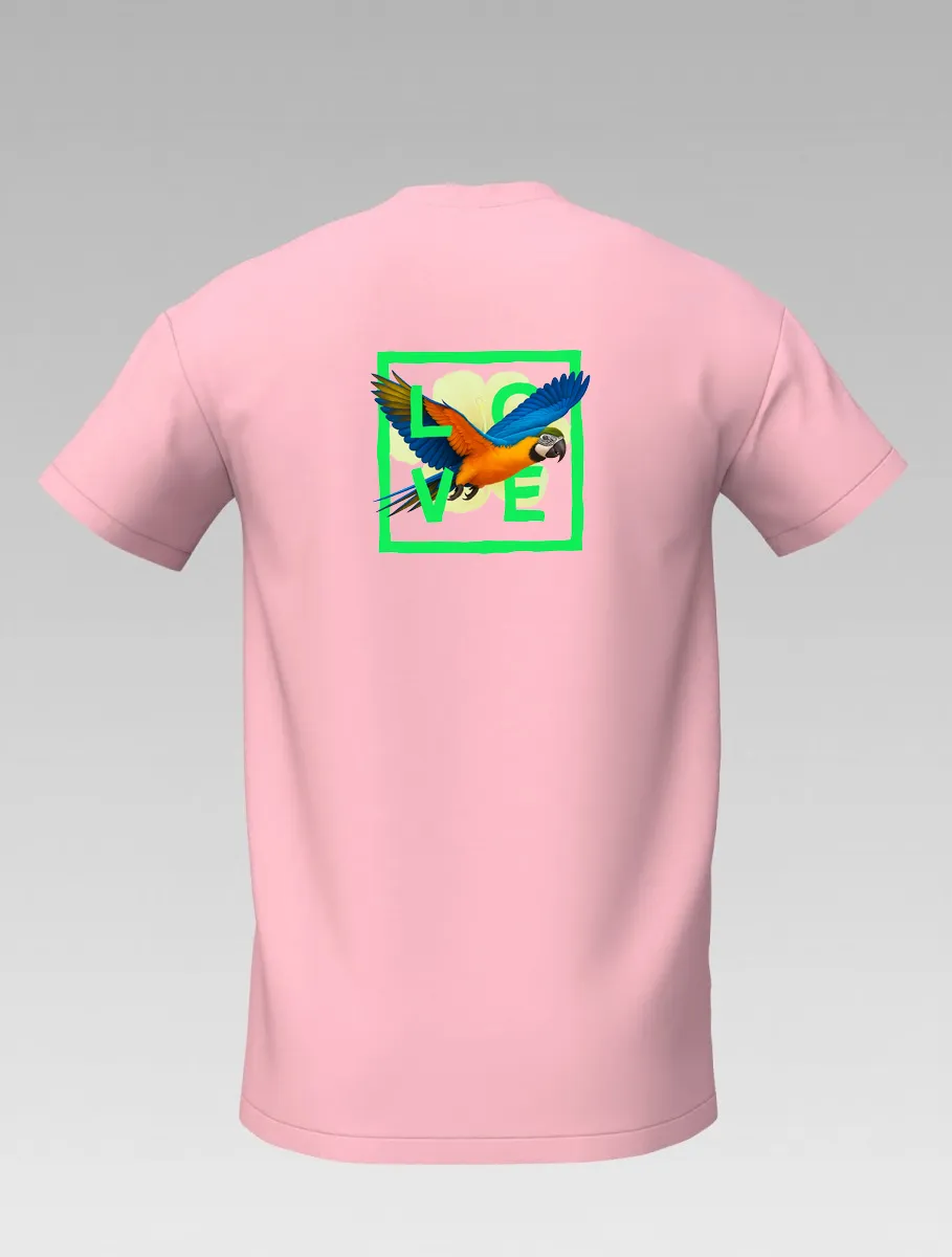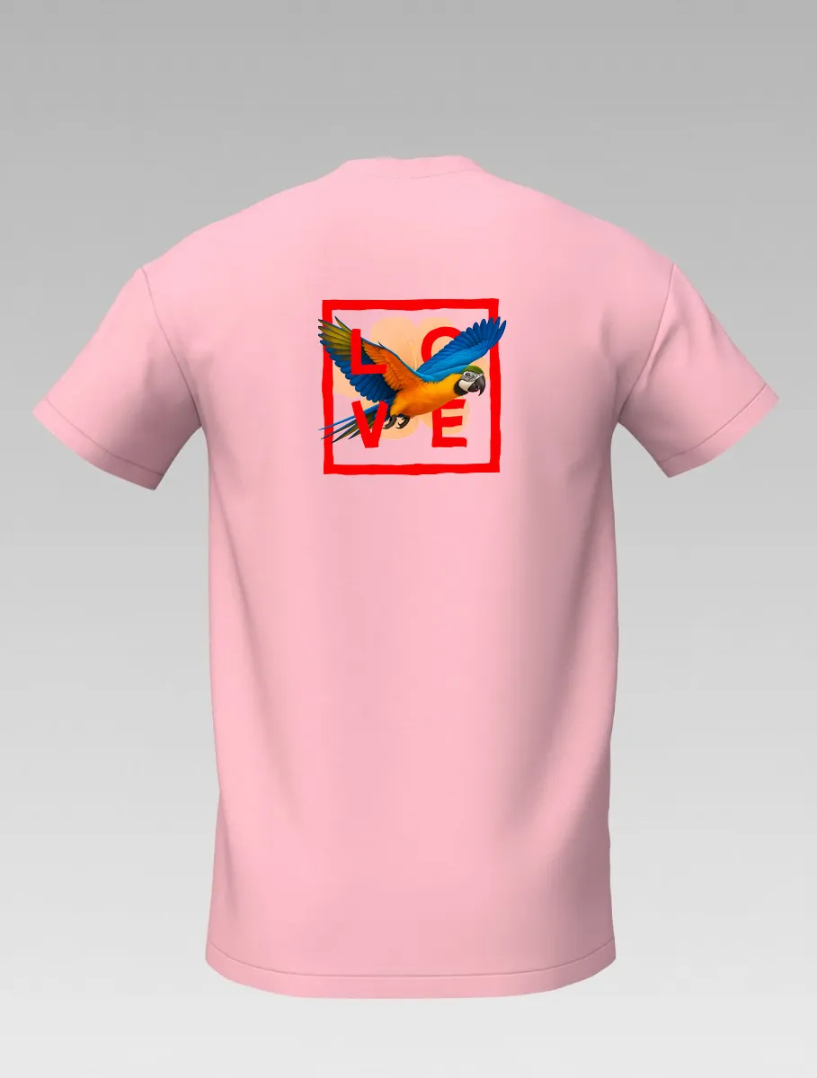 This pink T-shirt part of the LOVE line, captures the warmth and tenderness of tropical sunsets.