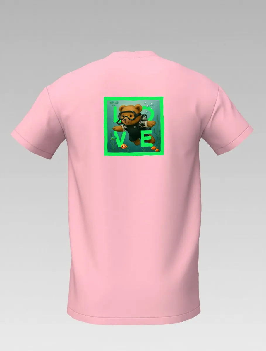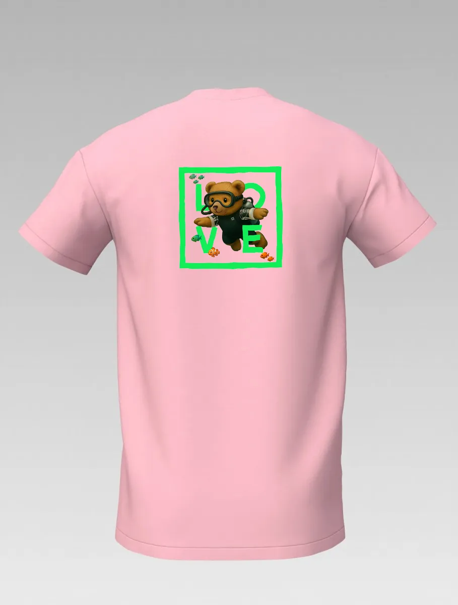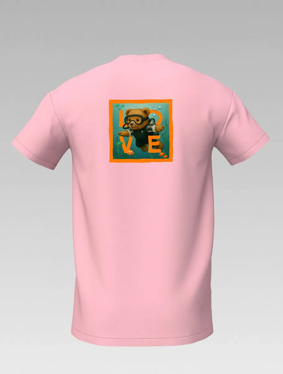 Kid’s Pink T-shirt – The Bear’s Underwater Adventure – LOVE Edition