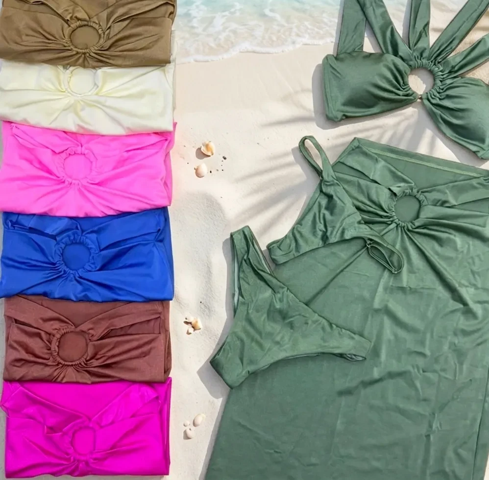 The Long Beach Skirt: A true high-waisted skirt that flows elegantly down to just above the ankles. It instantly transforms the swimwear into a sophisticated and lightweight resort outfit.