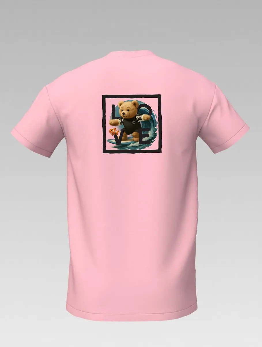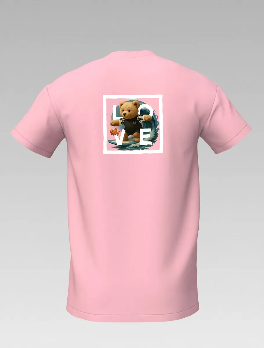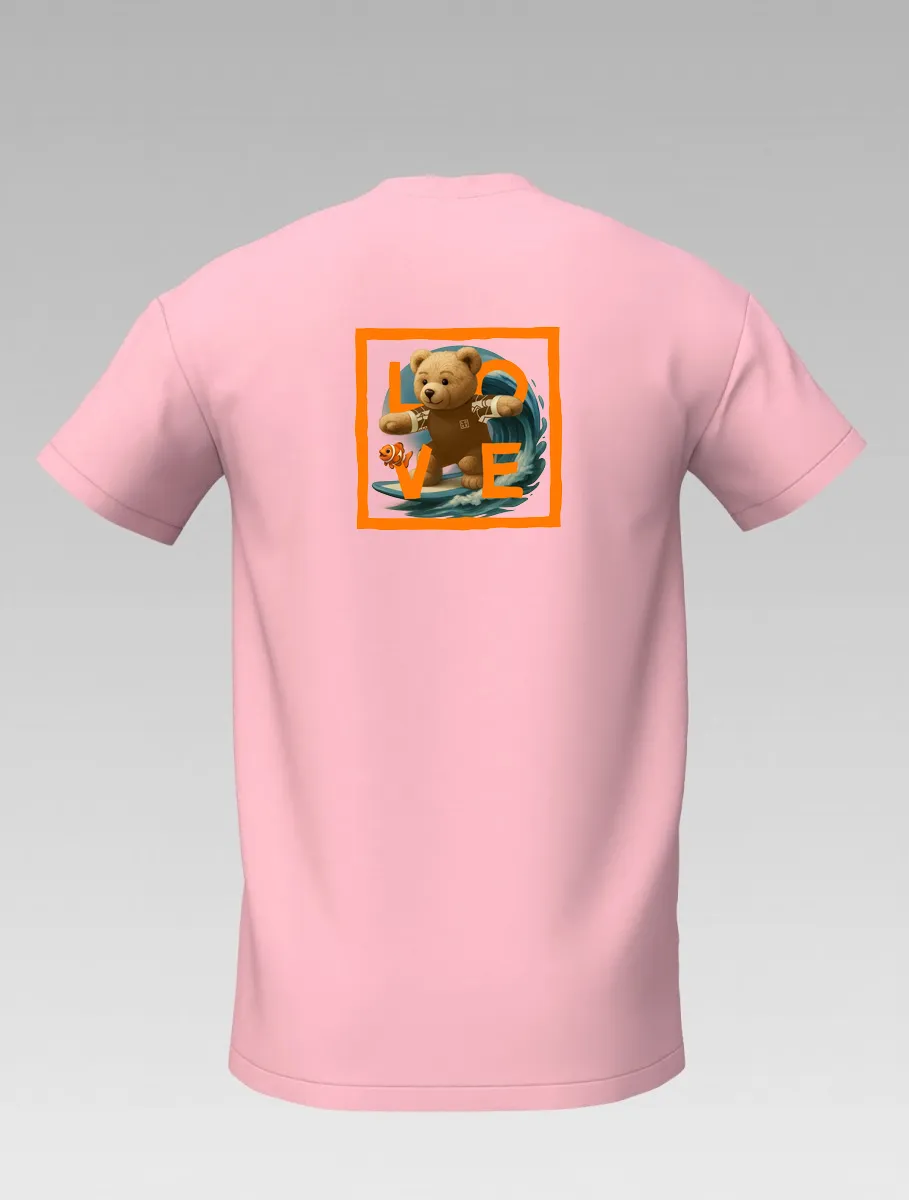 This pink T-shirt, under the LOVE line, captures the essence of summer with its joyful and vibrant design.