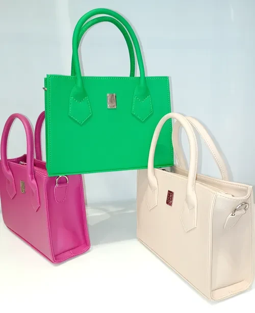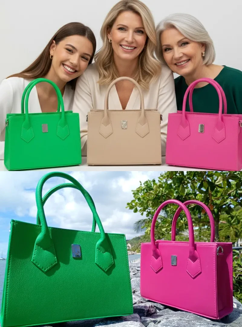 With its ideal dimensions (22 x 16 x 8 cm), this compact bag combines elegance, practicality, and a fresh vibe. Available in vibrant fuchsia, bright green, or natural beige, it brightens up any outfit.