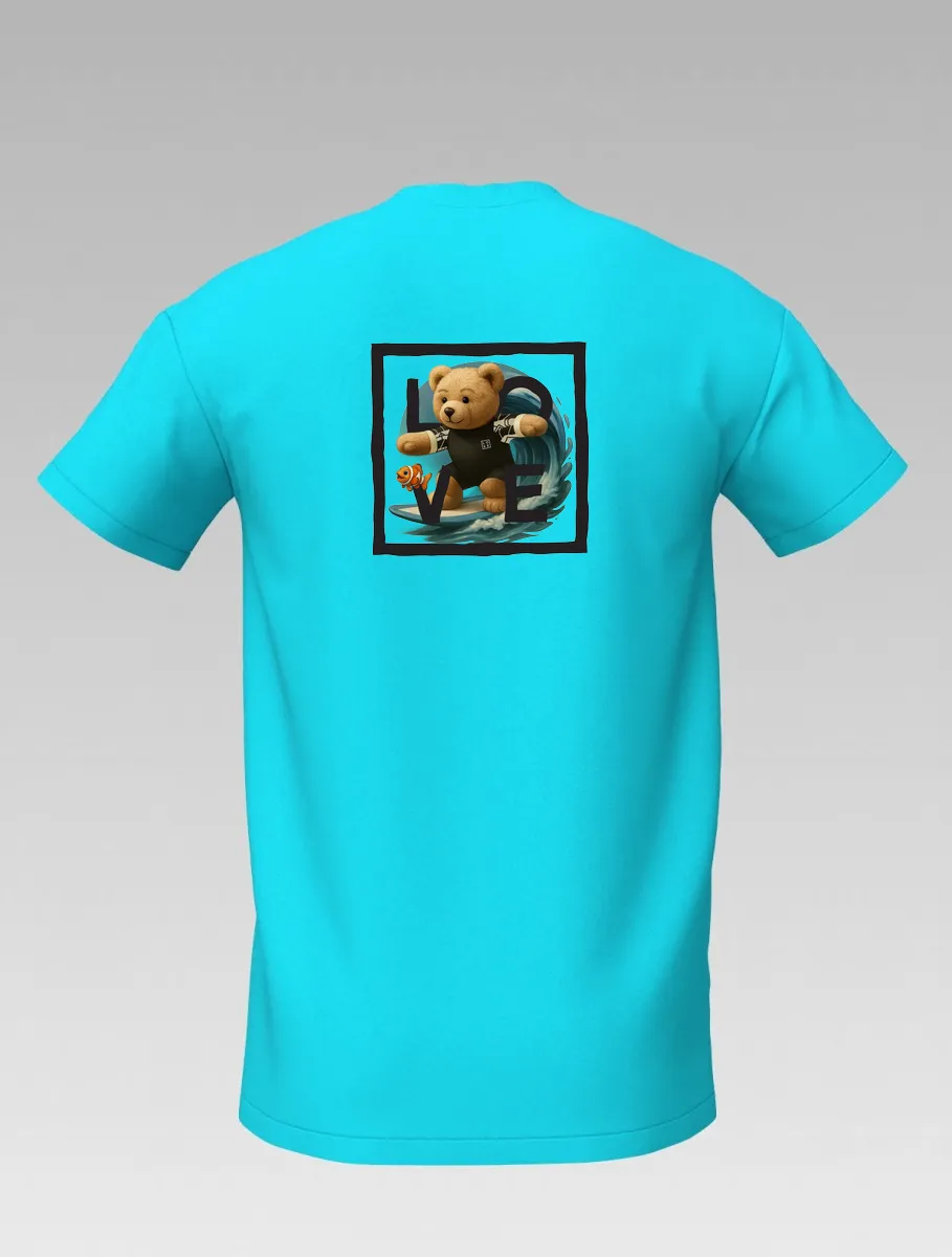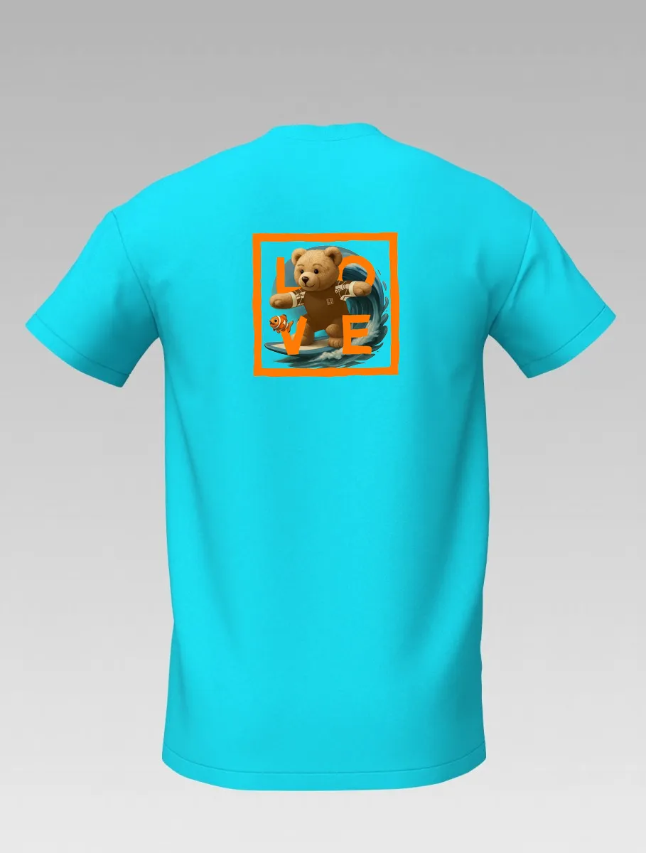 This turquoise T-shirt under the LOVE line, captures the essence of summer with its joyful and vibrant design.