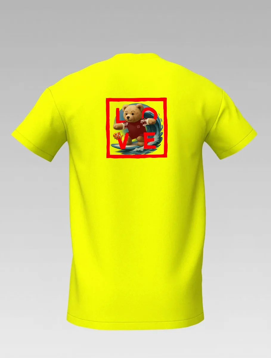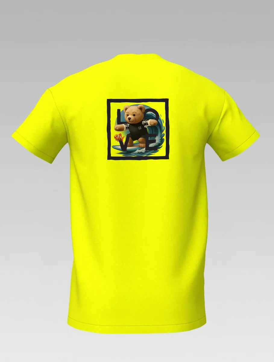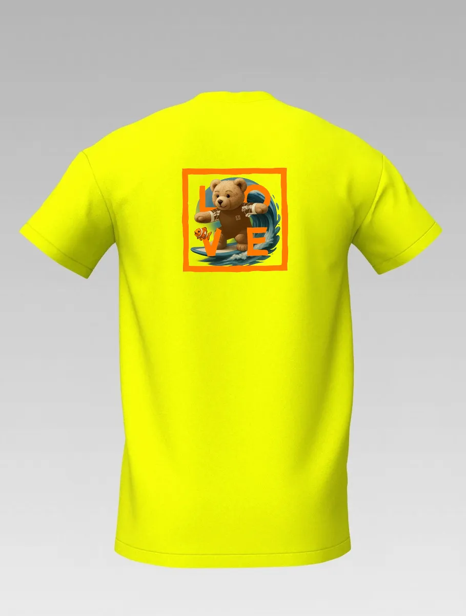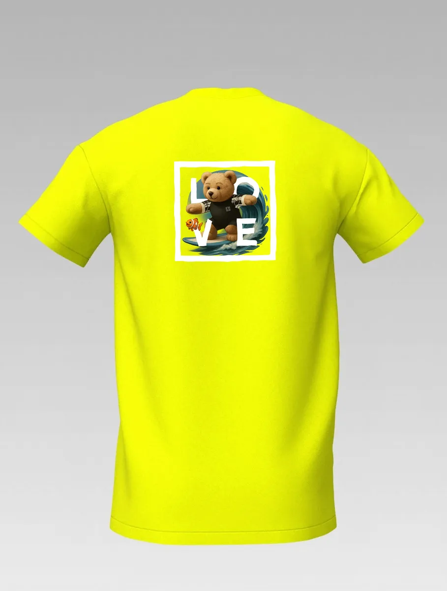 Yellow Kids’ T-shirt – Surfing Bear – LOVE Edition
